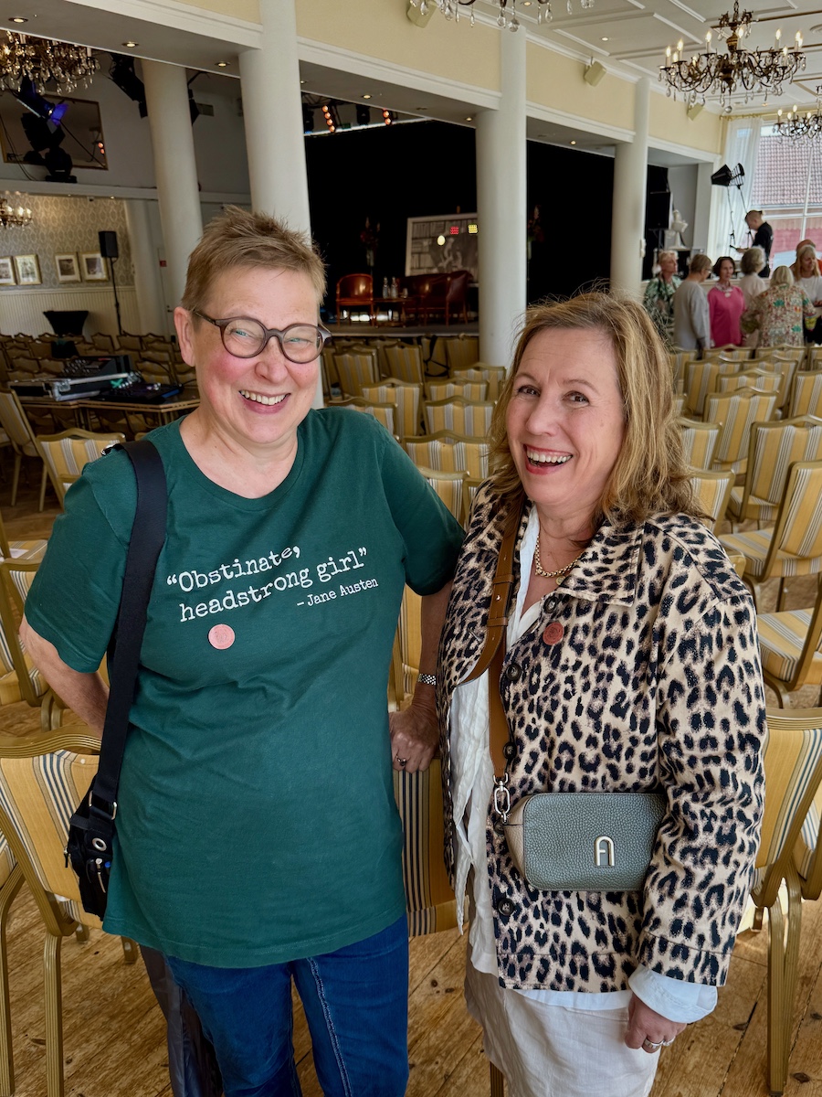 Suvi Ahola on erinomaisen perehtynyt haastattelija. Me puhuimme lukupiireistä, tietenkin, ja Jane Austenista, jonka postuumisti julkaistu teos Persuasion on saanut uuden suomennoksen Kersti Juvan toimesta. Viisasteleva sydän muuttui Arkailevaksi sydämeksi. Kirjan olen jo ostanut hyllyyni ja ihana lukukokemus odottaa. Haluan myös samanlaisen Jane Austen -paidan kuin Suvilla!