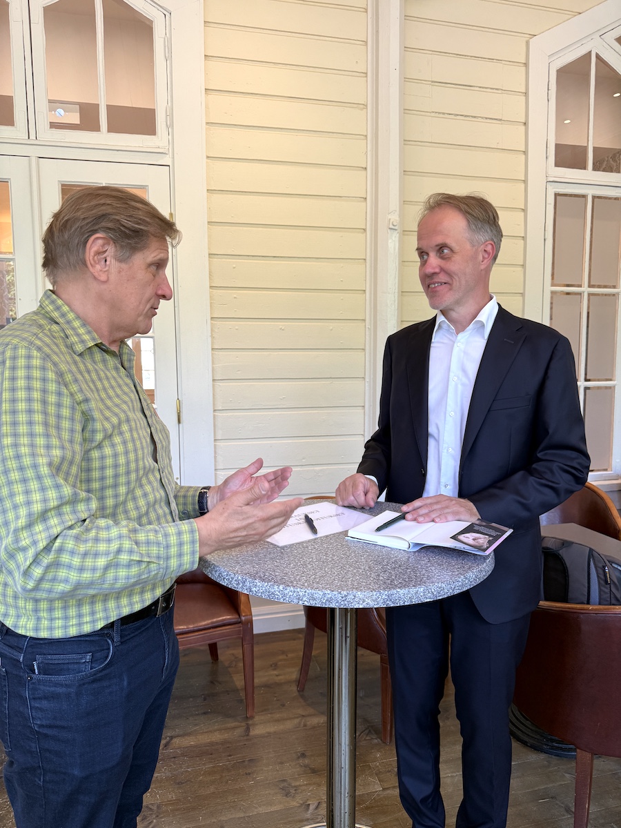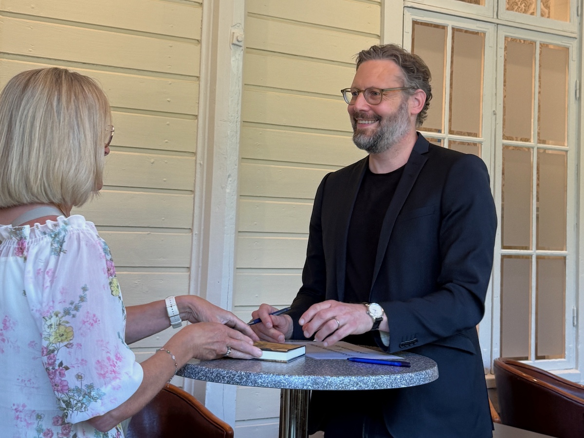 Naantalin kirjajuhlilla lavakeskustelut olivat noin puoli tuntia ja keskustelujen välissä oli aina vartin tauko, jolloin oli hyvää aikaa mennä ostamaan kirja ja pyytämään signeeraus. Jotkut kirjat – kuten Jumalan synty – olivat niin suosittuja, että ihan kaikille ei edes riittänyt. Keskustelut olivat niin inspiroivia, että minun lukulistalleni nousi monta uutta teosta.