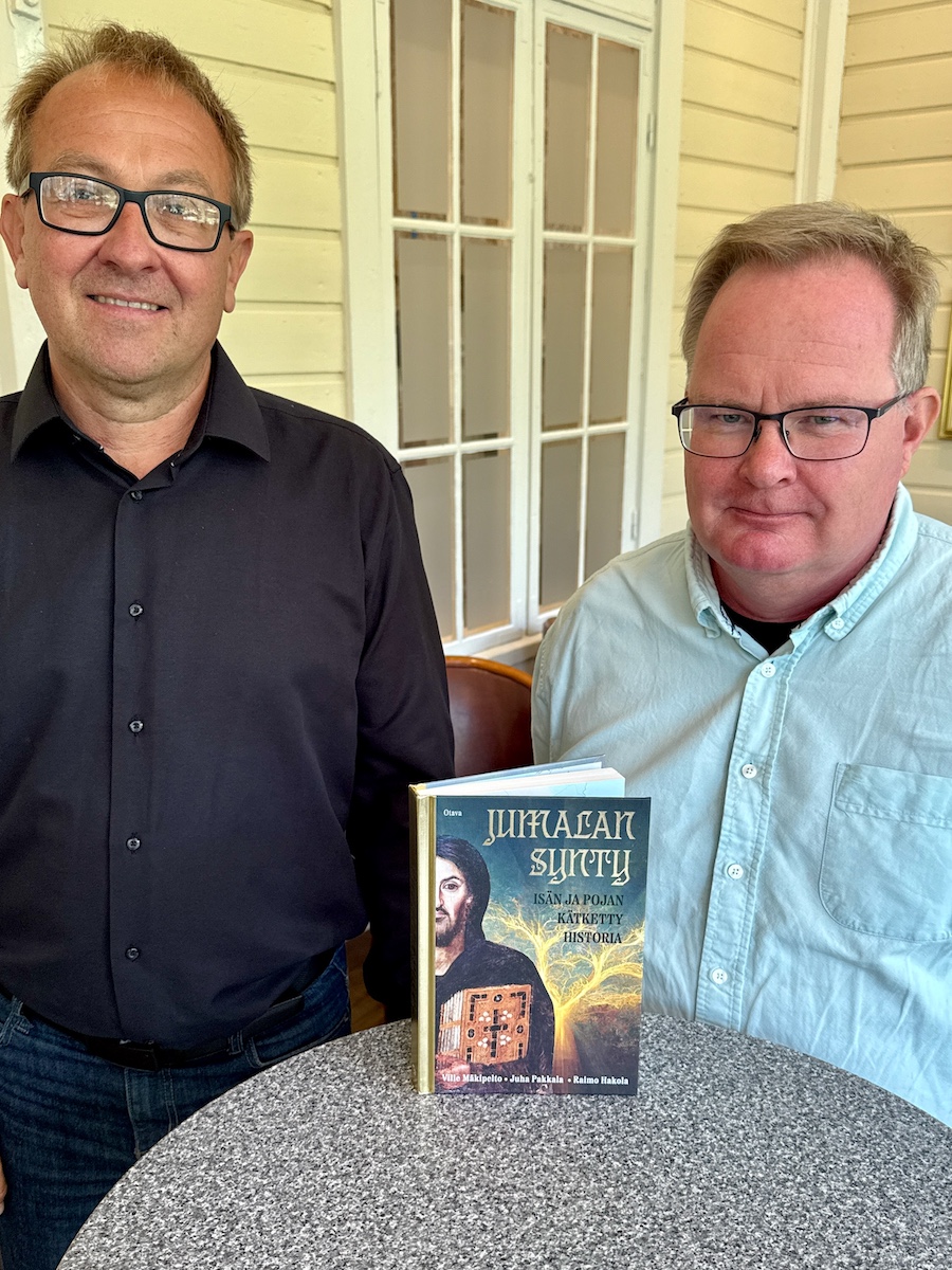 Jumalan synty on niin vahva historiaan pohjaava tietokirja, että jotkut historian vastustajat ovat jopa polttaneet niitä. Tämä on luettava! Kuvassa tekijöistä Juha Pakkala ja Raimo Hakola. Ville Mäkipelto ei ollut paikalla.