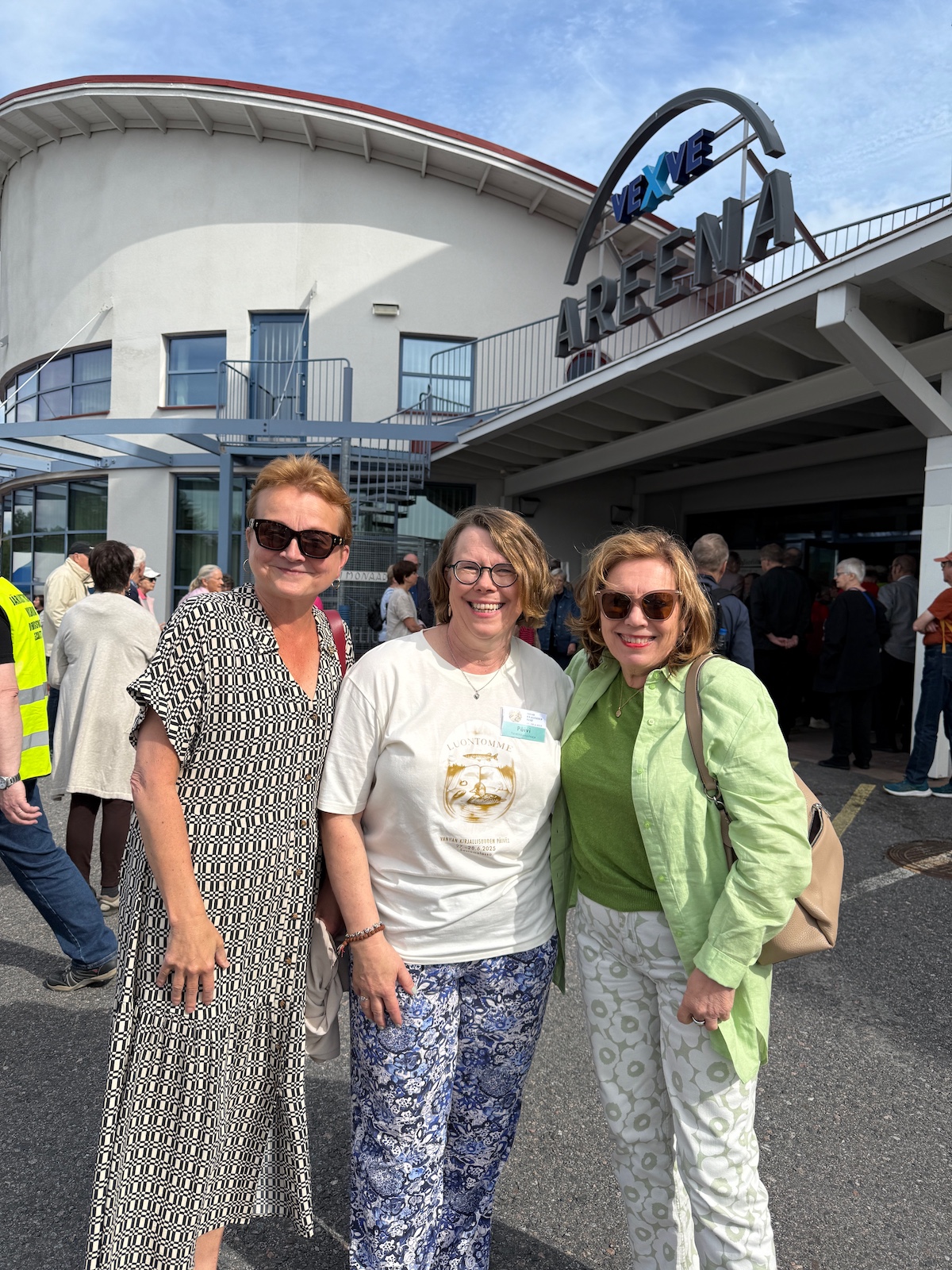 Sastamalan VKP:n ohjelmatoimikunnan pj Sanna-Mari Hovi (vas.), toiminnanjohtaja Päivi Mäki-Kerttula ja minä, joka olen ohjelmatoimikunnan jäsen. Päivillä on tapahtuman hieno teemapaita päällään.