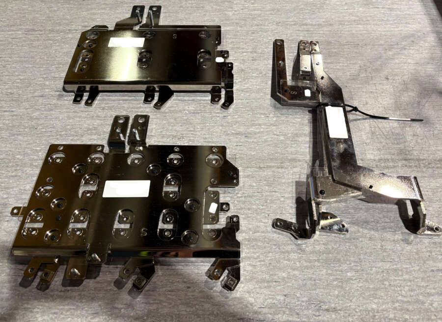 Segerillä valmistetaan muun muassa alumiinisia virtakiskoja. Tämä levytavarasta tehty kisko on muovitettu, siihen on laitettu insertit ja muut osat, sen jälkeen se pakataan ja toimitetaan Saksaan.