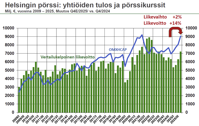 Alkuvuonna 2025 liikevoittosumma kääntyi kuitenkin uuteen nousuun, mitä on kestänyt jo noin puolisen vuotta. Vaikka teollisuuden uudet tilaukset ovat kasvaneet vain runsas pari prosenttia vuoden 2025 tammi-marraskuussa, tuloskasvu tullee jatkumaan kiihtyvällä vauhdilla vuoden 2026 alkupuoliskolla.