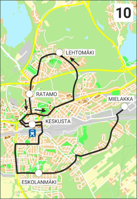 Tämän takia 19.1.2026 alkaen linja 10 ei enää Lehtomäessä poikkea Haukitielle, Tyttilammenkadulle ja Ahventielle, vaan ajaa suoraan Lehtomäenkatua pitkin. Lehtomäen ajantasauspysäkkinä linjalla 10 käytetään jatkossakin pysäkkiä Ahventie L. Tehtävä muutos lyhentää linjan ajoaikaa tarvittavat minuutit ja parantaa aikataulussa pysymistä. Tehtävä muutos näkyy reittioppaassa 19.1. alkaen. Linjojen 7 ja 8 reitteihin ei tehdä muutoksia, vaan ne liikennöivät myös jatkossa Lehtomäen pohjoisreunan tonttikaduilla.