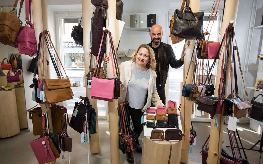 Perustajat Sanna Kantola ja Bruno Beaugrand kuvattuna Senaatintorin-liikkeessään Helsingin keskustassa. PEKKA KARHUNEN/KL