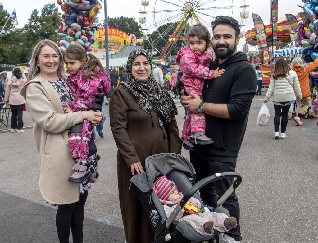 Satu ja Arkan Rasul tulivat Salon syysmarkkinoille lapsiensa Jasminin, Lianan ja Melinan sekä Arkanin äidin Aisha Abdullahin kanssa. Kuva: SSS/Kirsi-Maarit Venetpalo