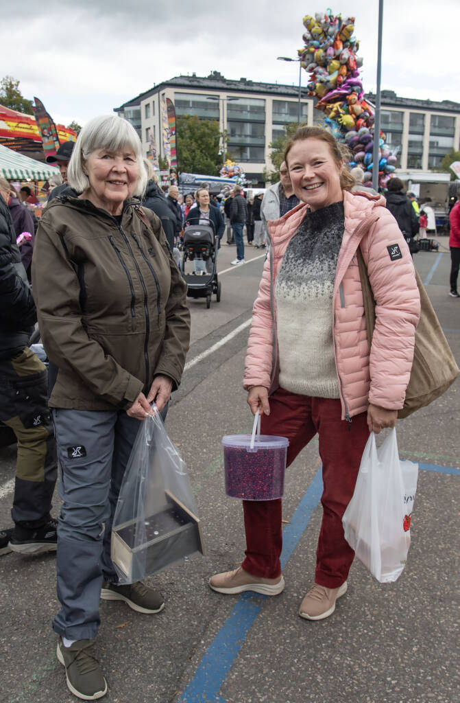 Ulla Fagerströmillä (vas.) ja Nina Vornasella oli kädet täynnä ostoksia. Kuva: SSS/Kirsi-Maarit Venetpalo
