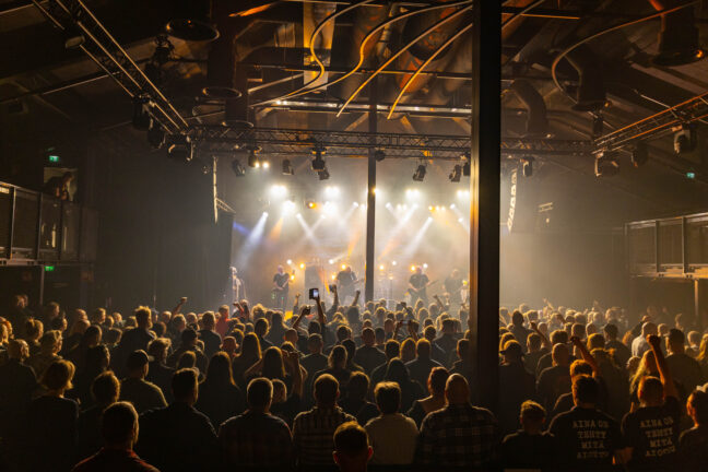 Jonkun humalaisen sedän suunnattomalla volyymilla heittämä ”hee ehe hee hei” -huudatus toivottaa bändin lavalle. Keikka aloitetaan kahdella uuden levyn kappaleella, jotka toimivat vallan loistavasti. Perisuomalaiset teemat, kuten juurikin avauskappaleen viina ja vittuilu, ovat koituneet monen tuhoksi ja tuollaisia riimejä on helppo jollottaa mukana.