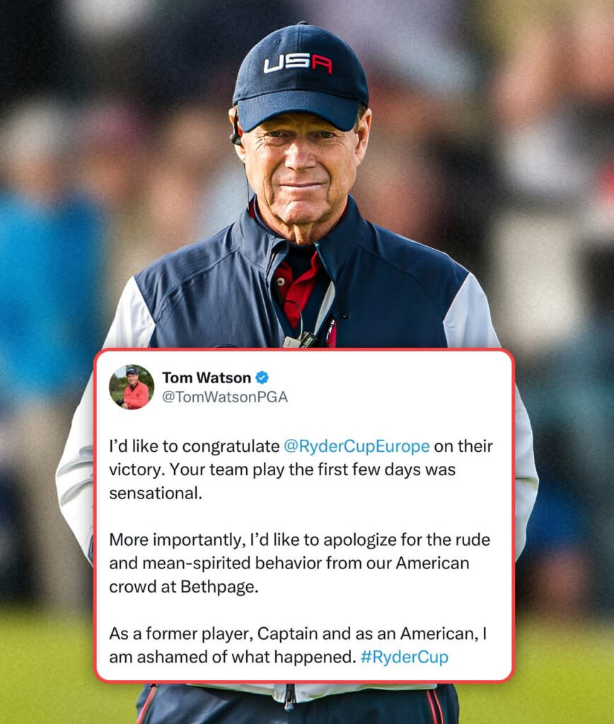 Jenkkilegenda Tom Watson tiivisti hyvin tilanteen omalla sosiaalisen median tilillään julkaisemalla onnittelunsa Euroopan joukkueelle, ja jatkamalla, ”…ja mikä tärkeintä, haluan pyytää anteeksi yhdysvaltalaisyleisön epäkohteliasta ja ilkeää käytöstä Bethpagessa.”