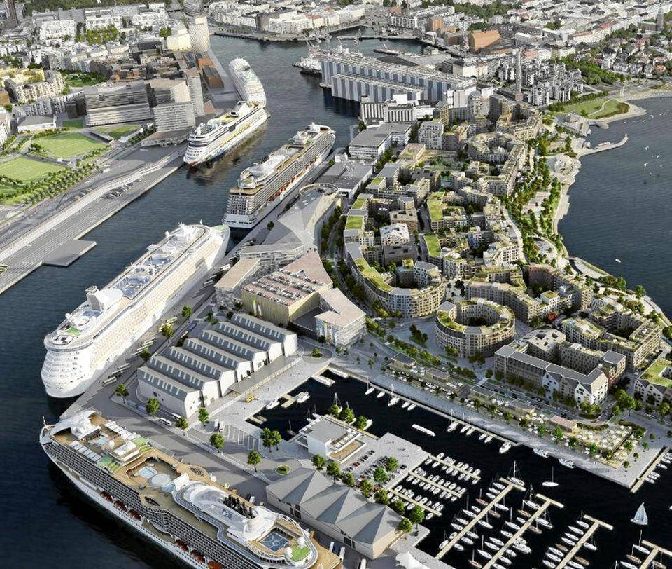 Hernesaaresta rakennetaan merellinen kaupunginosa, jonne on tulossa asuntojen lisäksi puistoja. Risteilysatama säilyy alueella.