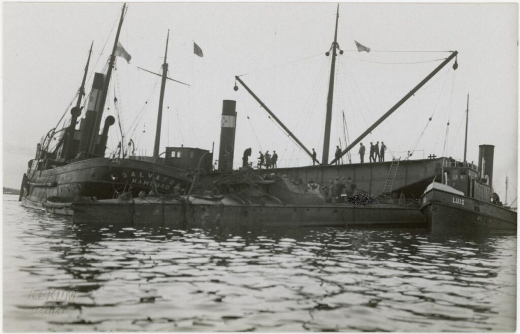 S2:n nostotyöt käynnissä Reposaaressa. (Emil Kustaa Klint/Satakunnan museo/Museovirasto)