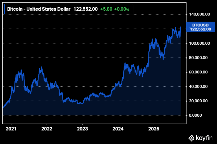 Wall Streetin jättiläisen tuore ennuste merkitsee 35 prosentin nousupotentiaalia Bitcoiniin nykyisestä noin 122 000 dollarin hinnasta.