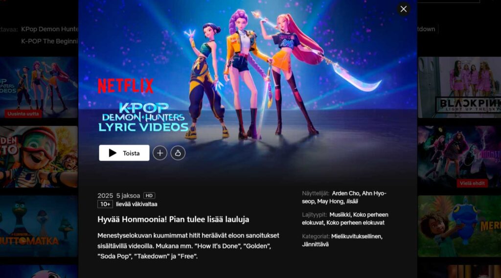 Netflixissä on nimittäin julkaistu uusi nimike KPop Demon Hunters Lyric Videos.