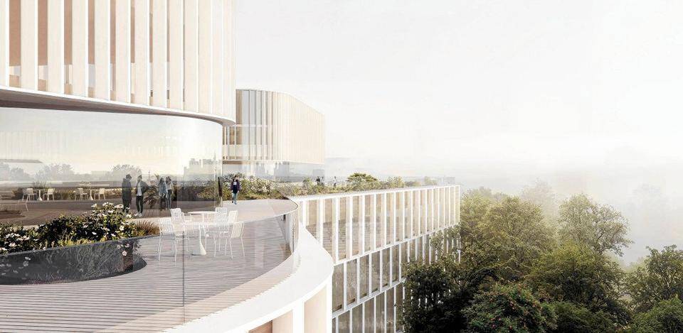 Tältä Supercellin pääkonttori Marian sairaalan tontilla näyttää havainnekuvassa. Anttinen Oiva Arkkitehdit