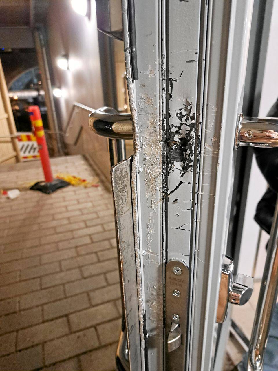 Vuokratalon alaovissa näkyi murtojälkiä. Lukijan kuva