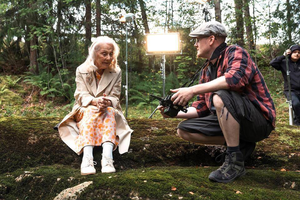 Näyttelijä Seela Sella ja ohjaaja Teemu Villikka keskustelivat Ikuisesti-elokuvan kuvauksissa Sippolassa. ARTTU KORTELAINEN