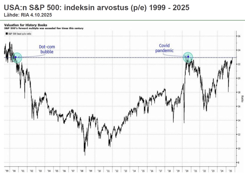 Kuluvan vuoden keväällä arvostustaso romahti USA:n tullien ilmoituksen jälkeen, kun S&P 500-indeksi oli pudonnut helmikuun huipulta lähes 20 prosenttia huhtikuun pohjalle.