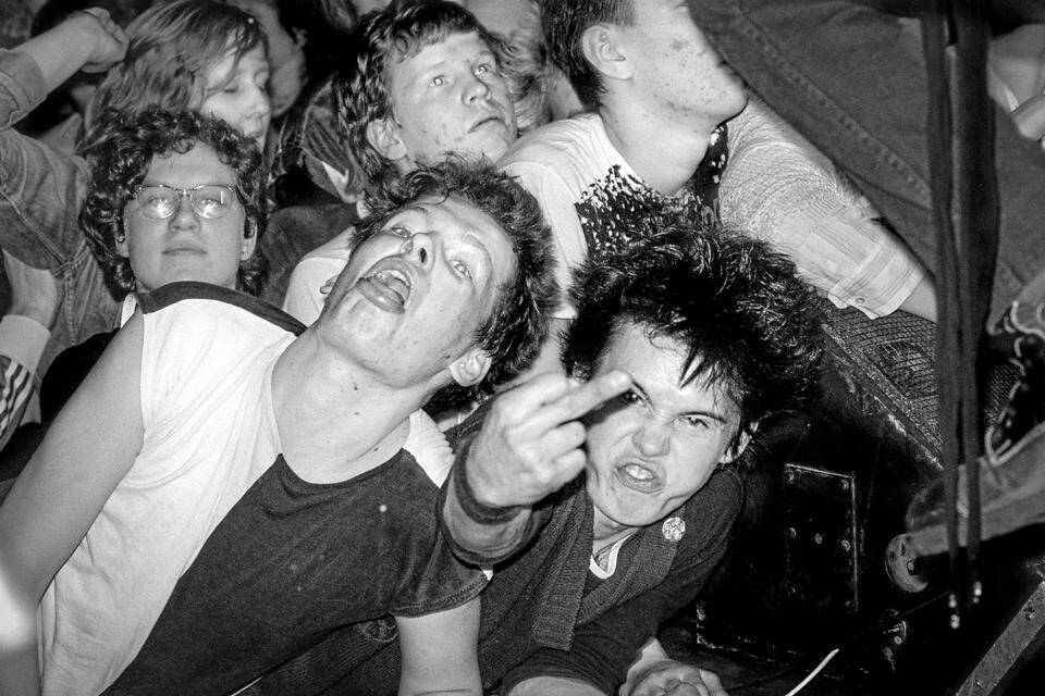 Näyttelyssä nähdään myös konserttikuvia 1970- ja 1980-lukujen nousevista rock-yhtyeistä, kuten Hanoi Rocks, Sielun veljet, Pelle Miljoona ja Dead Kennedys.