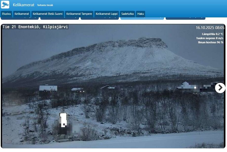 Kelikamera taltioi ensilumen Saanatunturilla 16.10.2025. Kelikamera/Kuvakaappaus