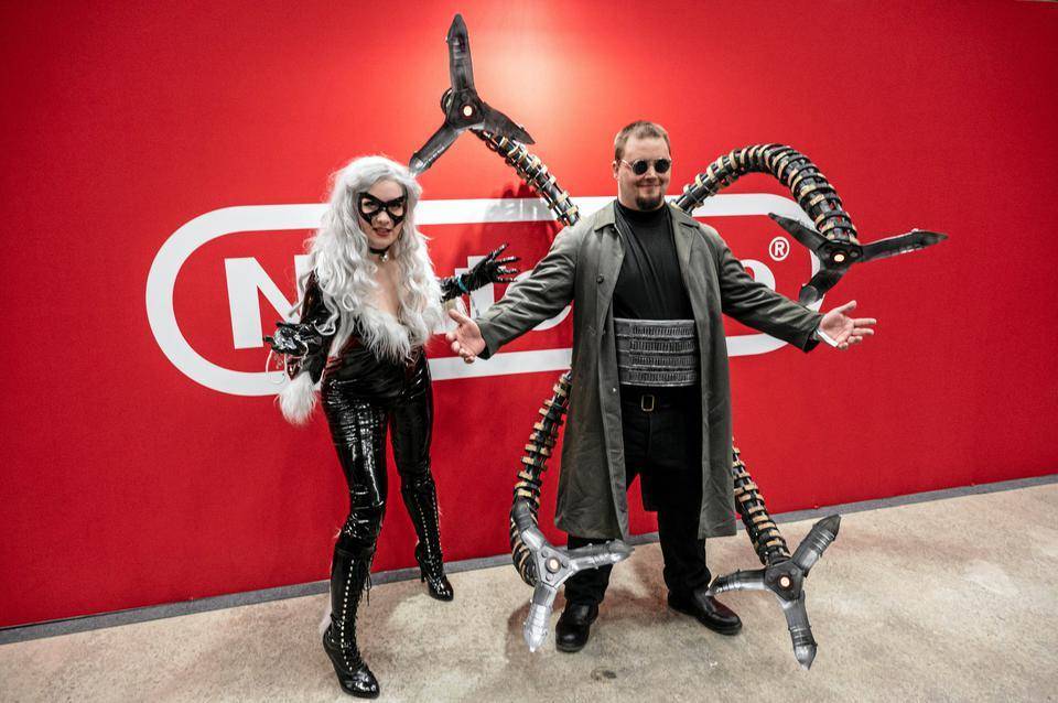 Cosplay on oleellinen osa Comic Conia. Tässä tamperelaisten Didi Oun ja Einon Marvel-taidonnäytteet Black Cat ja Doctor Octopus. Ville Laine