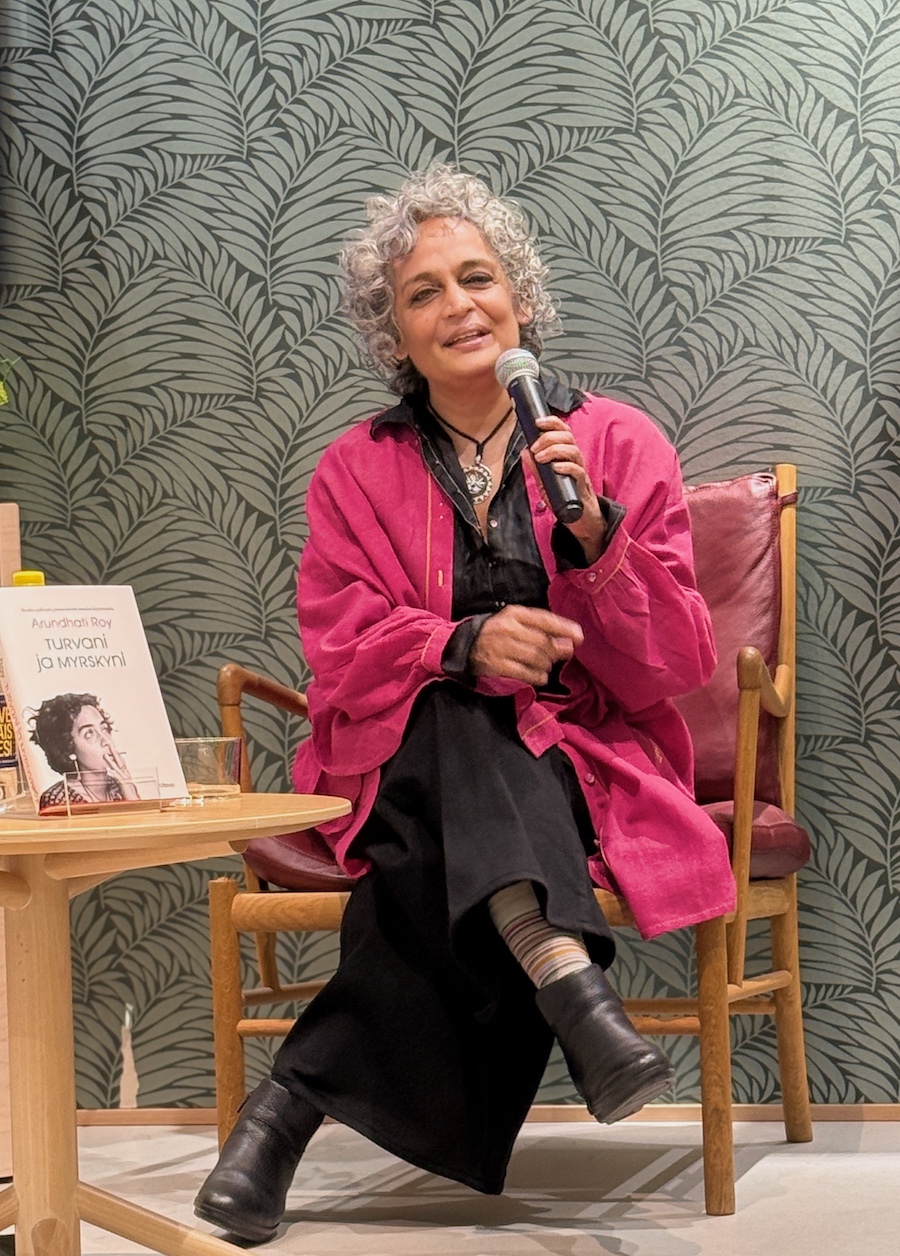 Arundhati Roy Helsingin Suomalaisessa kirjakaupassa 17.10.2025.