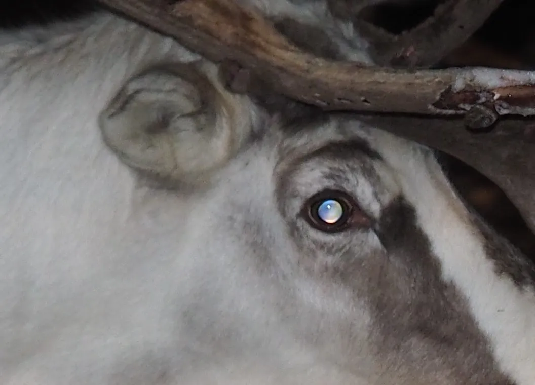 ”Talvella silmä muuttuu siniseksi, mikä auttaa poroa näkemään paremmin pimeässä. Kalvo heijastaa valon kahdesti verkkokalvon läpi, jolloin tappi- ja sauvasolut saavat tuplaärsykkeen”, hirvieläinsairauksien dosentti Sauli Laaksonen kertoo.