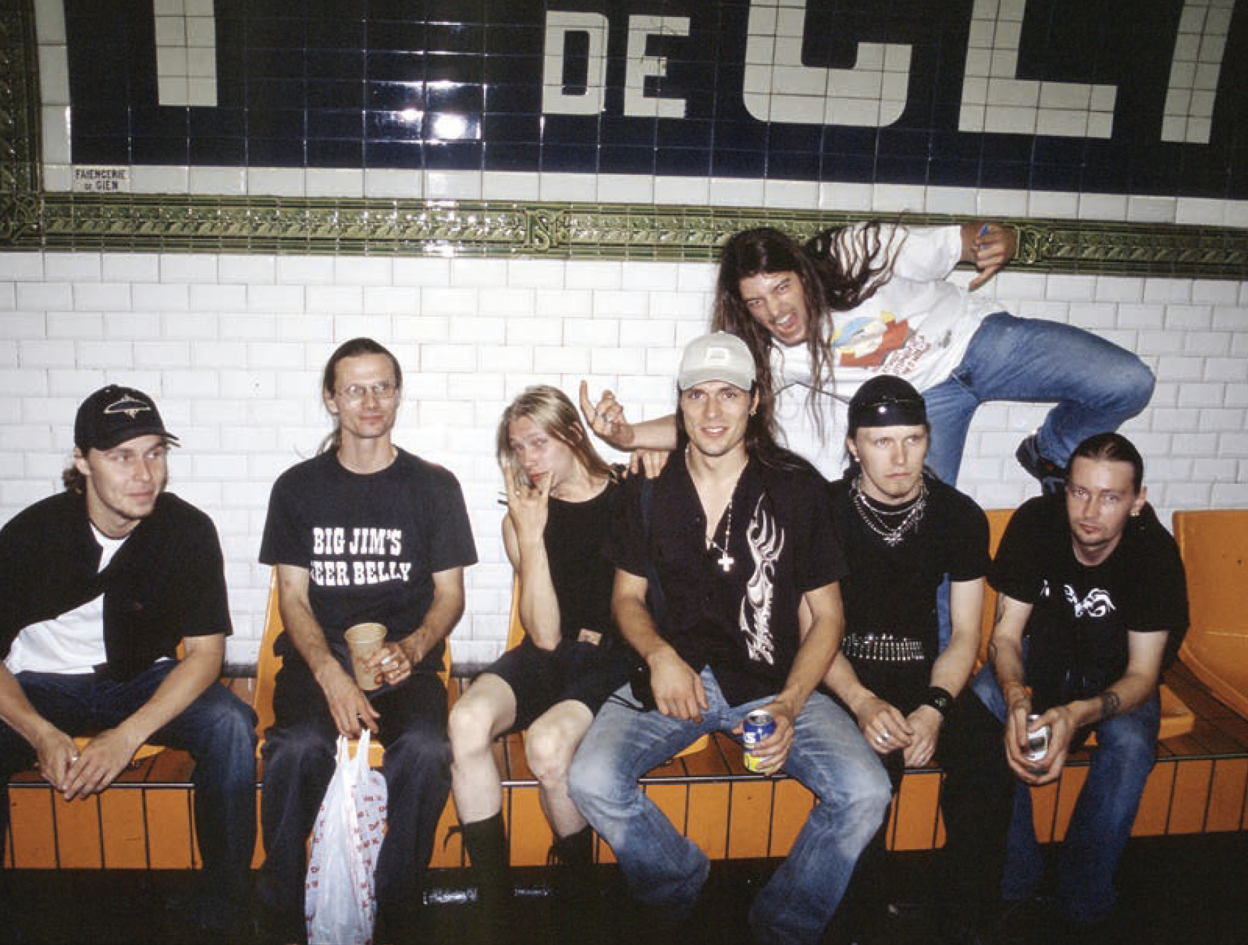 Pariisin metrossa Nightwish-kiertueella 2002. Charonin ja henkilökunnan takana After Forever -yhtyeen Bas Maas. Kuva: Matti Riekki