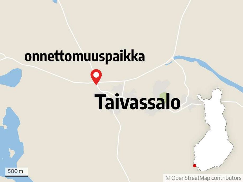 Heinäkuun 18. päivä Taivassalossa tapahtui yhdistelmäajoneuvon ja henkilöauton välinen risteyskolari. IL grafiikka / Openstreetmap