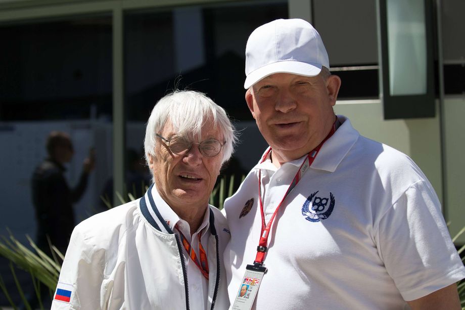 Bernie Ecclestone (vas.) ja Viktor Kirjanov kuvattuna yhdessä Venäjän GP:n rata-alueella vuonna 2017. AOP