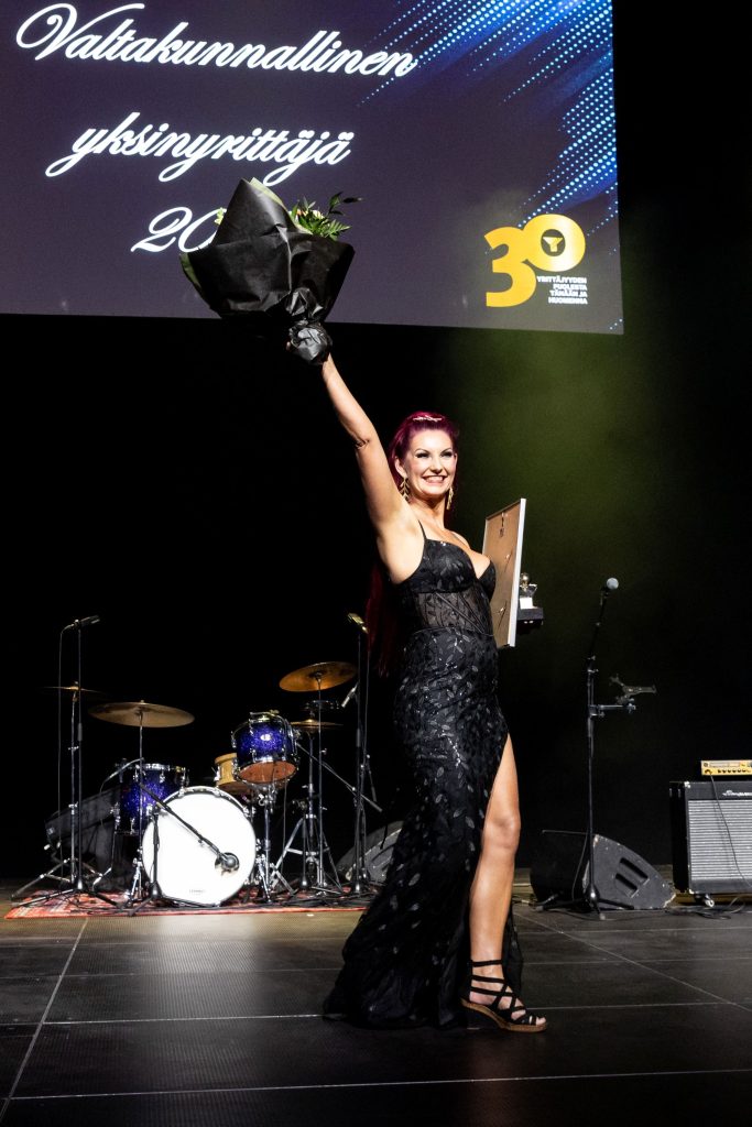 Katra Solopuro palkittiin Valtakunnallisilla yrittäjäpäivillä lauantaina Tampereella. Kuva: Rami Marjamäki
