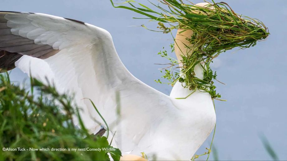Missä suunnassa pesäni onkaan, ihmettelee valokuvaaja Alison Tuckin ikuistama lintu. Alison Tuck / Nikon Comedy Wildlife Awards 2025