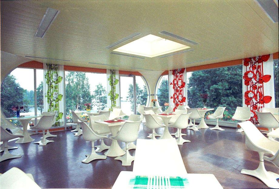 Ufo-kahvila edusti sisältä 70-luvun tyyliä parhaimmillaan. Rakennuksen tyylin kruunasivat siihen sopivat huonekalut sekä ikkunoiden takana aukeava järvimaisema. Etelä-Karjalan museo