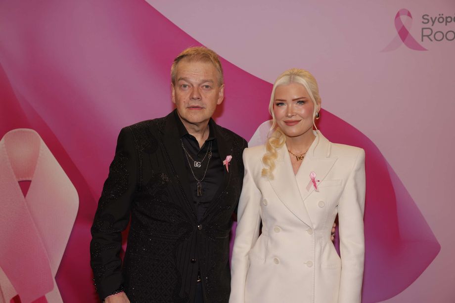 Kurre Westerlund ja Jenna Westerlund saapuivat TTK:n Roosa Nauha -lähetykseen.