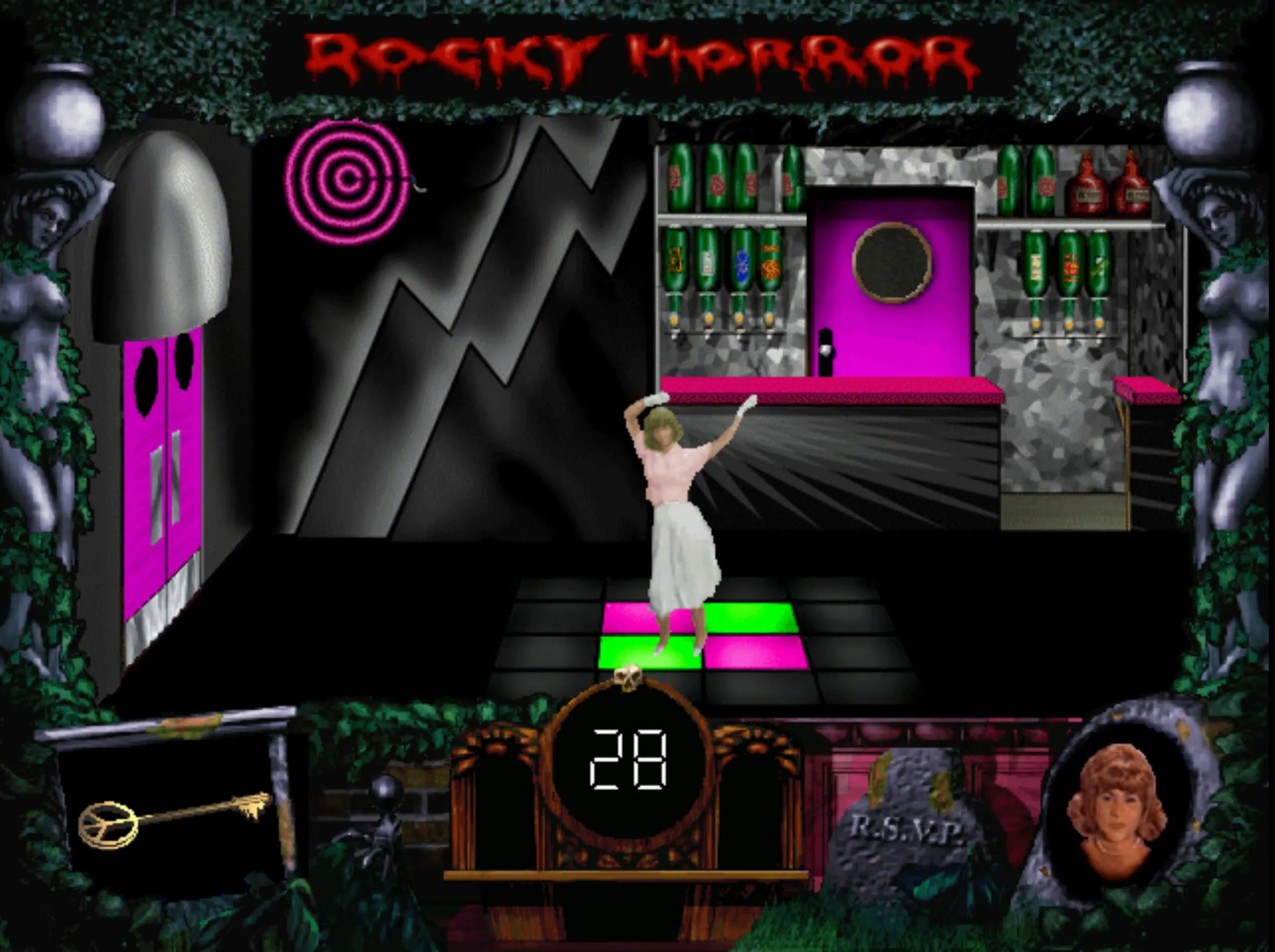 Mutta pelin julkaisijalla ei ollut lisenssiä esimerkiksi siihen kuuluisaan elokuvaan, joten Tim Curryä, Little Nelliä, Patricia Quinnia, Susan Sarandonia tai Barry Bostwickiä ei pelissä nähdä. Ja tietenkään peliä varten ei myöskään lisenssoitu esimerkiksi elokuvan soundtrackilta tuttuja versioita niistä biiseistä, mutta ei myöskään mistään Richard O’Brienin liveversiosta. Niinpä pelaajan on tyytyminen midiversioihin, jotka eivät tietenkään kuulosta läheskään yhtä hyvältä.