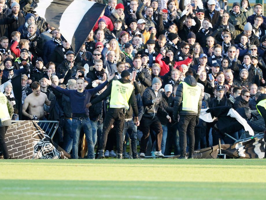 Taiston tauottua kentällä nähtiin ikävä temppu, kun eräs järjestyksenvalvoja kamppasi kentälle kirmanneen nuoren TPS-fanin. Kompuroivaan faniin puolestaan törmäsi toinen TPS-kannattaja, joka oli myös menossa juhlimaan kentälle sarjanousua.