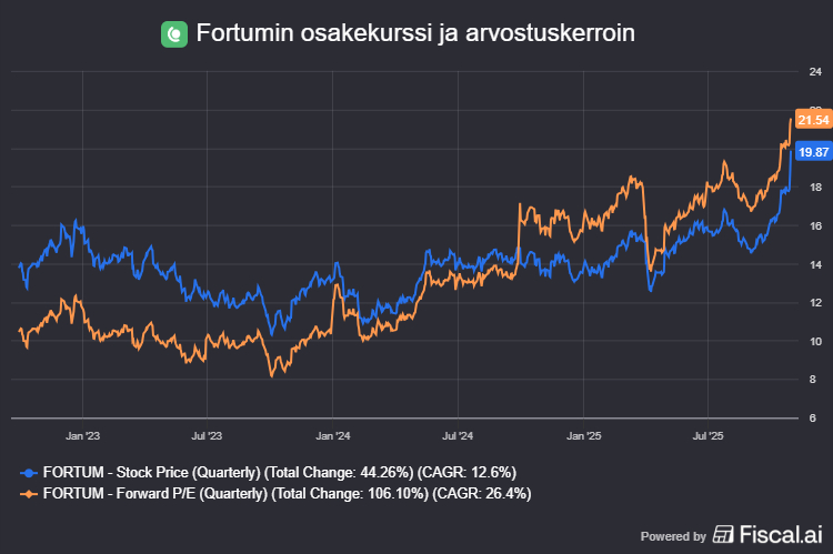 Fortum energiayhtiö sijoittaminen Fortum energiayhtiö sijoittaminenFortumin osakekurssin ja konsensusennusteilla laskettu P/E-arvostuskerroin.
