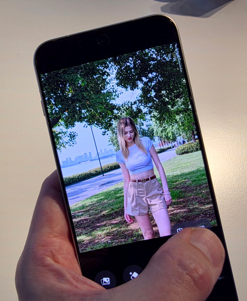 Muutenkin pikaräpsyt näyttivät puhelimen ruudulla kiitettävänkin tarkoilta ja järkevää dynamiikkaa tarjoavilta, mutta sävymaailmaltaan vähän liioittelevilta. Zoomaus yltää jopa 120-kertaiseen suurennukseen, mutta kuvissa näkyi tuossa vaiheessa melkoista tekoälyhuttua. Toimivampaa tekoälyä löytyy esimerkiksi AI Eraser -toiminnon muodossa. Se teki paljon järkevämmän oloista jälkeä.