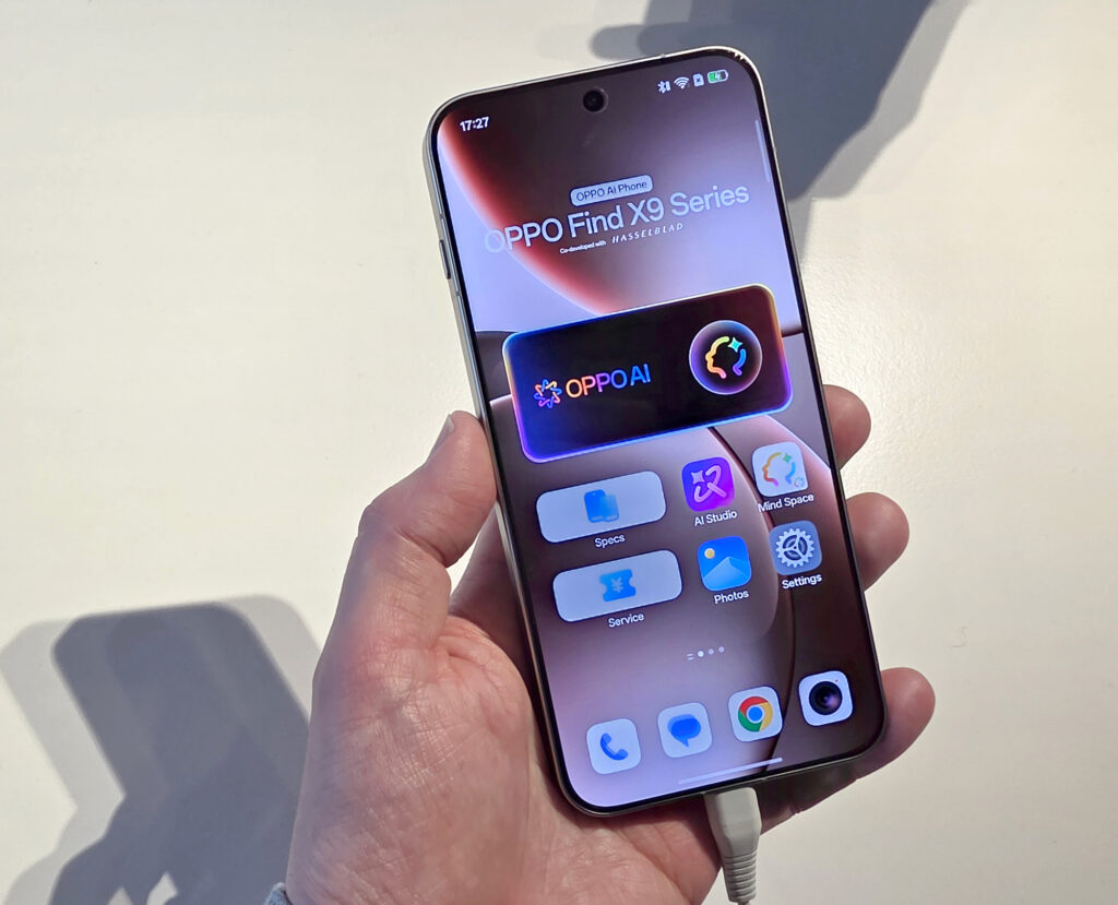 Tilaisuudessa julkaistiin sekä Oppo Find X9 Pro- että Oppo Find X9 -puhelimet. Näistä vain jälkimmäinen tulee Suomessa myyntiin, joten kävimme pikaisesti tutustumassa tähän malliin – ominaisuuksista voi lukea tarkemmin laitteen tuoteuutisesta. Testilaitteita ei valitettavasti ollut vielä saatavilla, joten pikatutustuminen oli hoidettava demoalueen laitteilla. Ei mikään unelmatilanne, mutta voi ensihavaintoja niinkin tehdä.