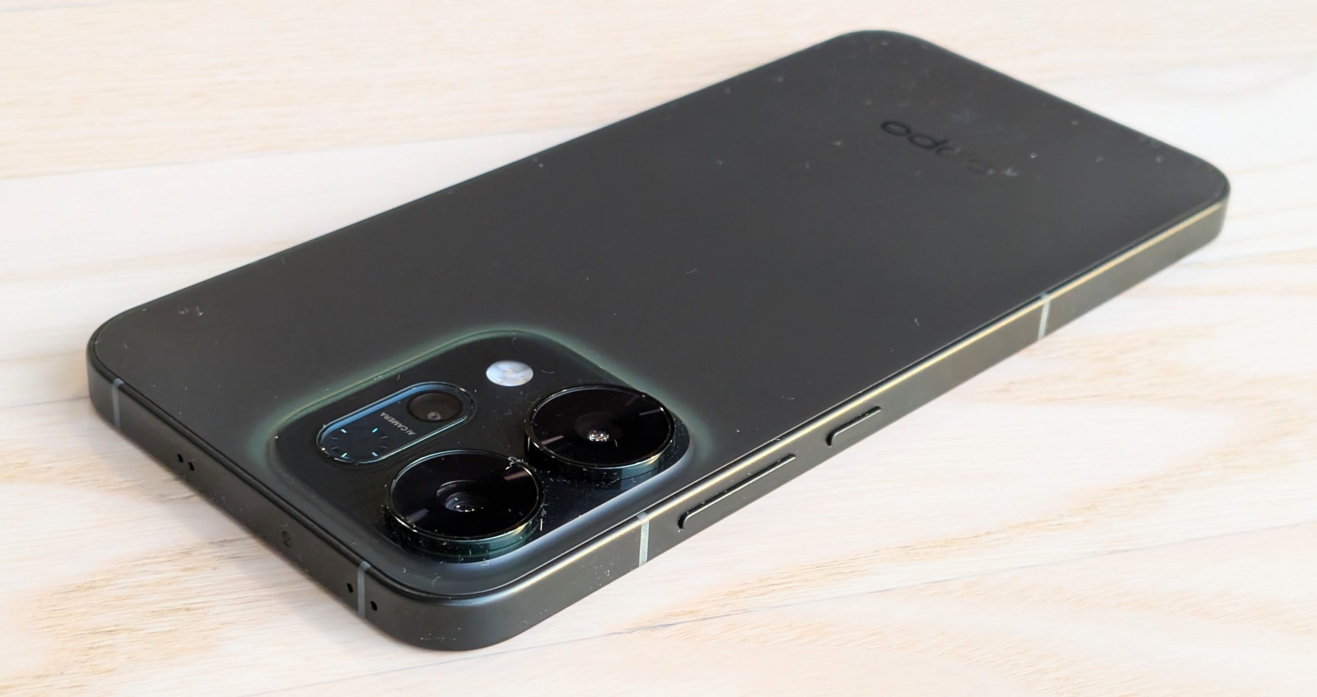 Mielenkiintoisesti Reno14 5G:ssä on takana kolme LED-kuvausvaloa: kaksoisvalo pää- ja ultralaajakulmakameroille sekä lisäksi tarkennukseen tarkoitettu niin sanottu telekameravalo kaikkein vaikeimpiin olosuhteisiin. Oppon mukaan valaistus on näin ”jopa 10 kertaa kirkkaampaa”, ja vaikka lukemien varmentaminen vaikeaa onkin, tuntuu kuvausvalo todella monia huippupuhelimiakin kirkkaammalta.