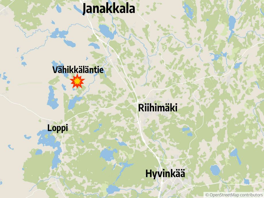 Tapahtumapaikka sijaitsee Janakkalan kunnan eteläosassa. IL Taneli Toikka / Openstreetmap