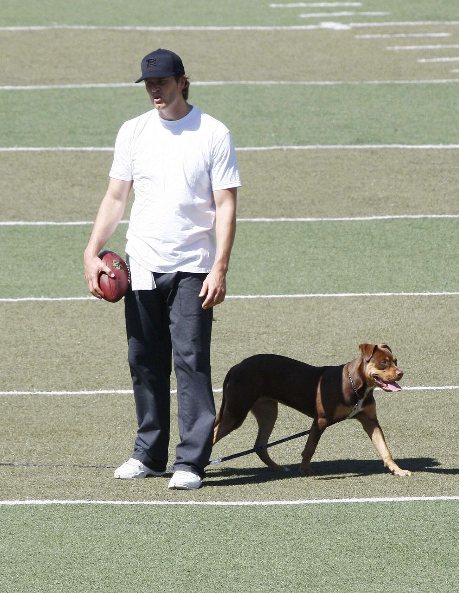 Tom Brady kuvattuna Lua-koiransa kanssa vuonna 2010. AOP