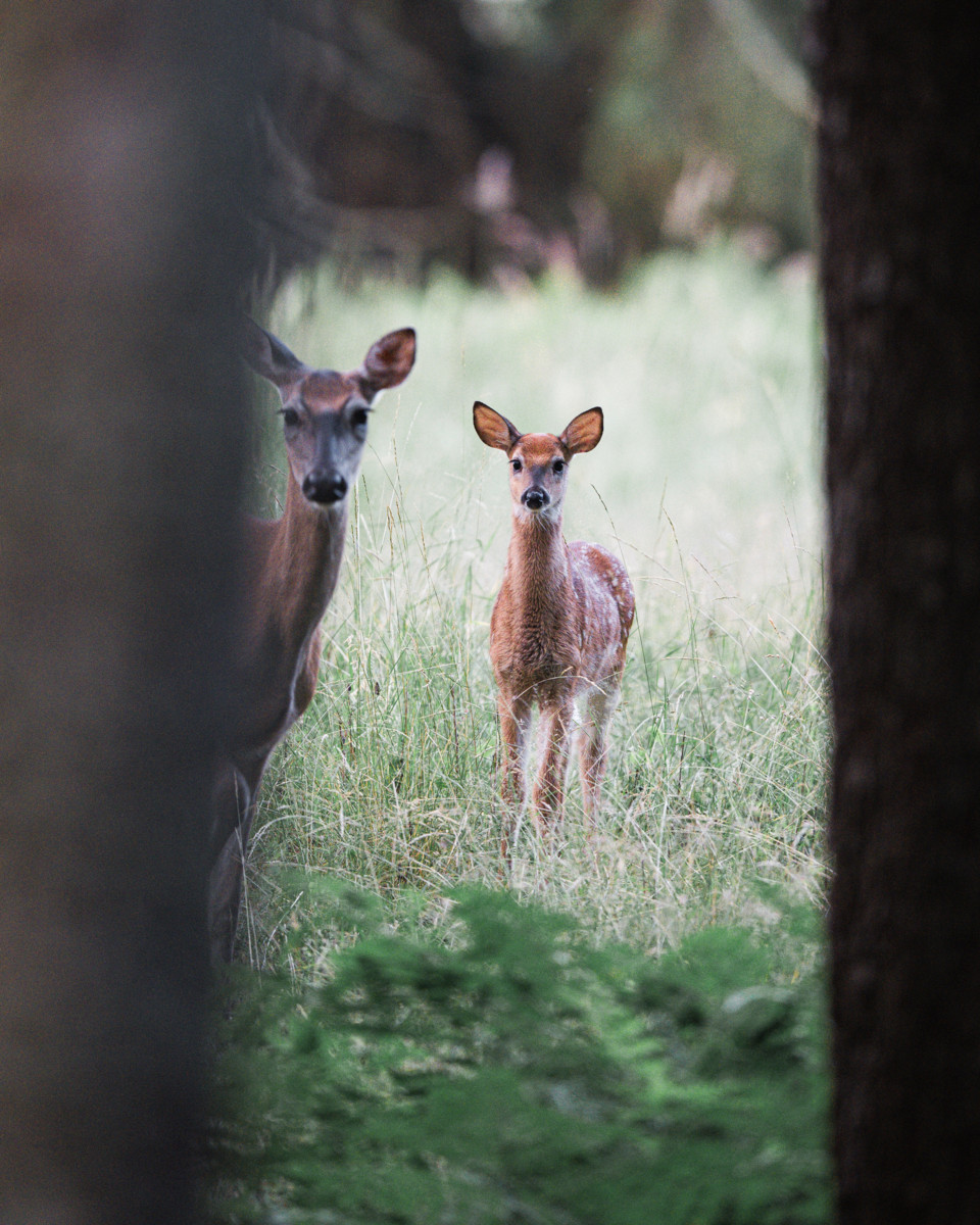 Villakoirani vinkuu kiihkoissaan, ja sitten ihan lähellä kahahtaa. Sarvekas uros ja paljaspäinen naaras katselevat fleksissä tempovaa pikkukoiraa. Valkohäntäkauriiden pitkät hännät pysyvät rennosti alhaalla, kun ne askeltavat rauhallisesti tiheikön suojiin.