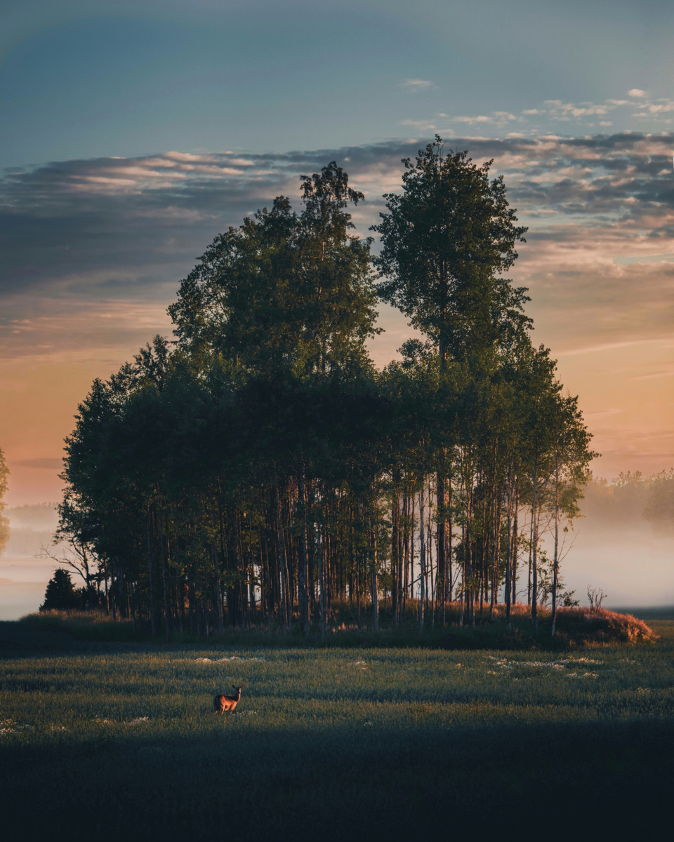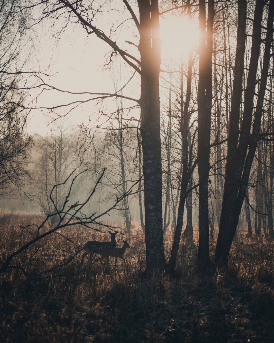 Kääpiövillakoirani havaitsee nämä villit asukkaat minua useammin. Se nuuskuttaa ilmaa ja kosteaan maahan painuneita sorkanjälkiä, kiskoo hihnassa kohti tiheikköä, haukkuu kimeää jahtihaukkuaan. Silloin saatan nähdä, että osa puunrungoista onkin poispäin liikkuvia jalkoja.