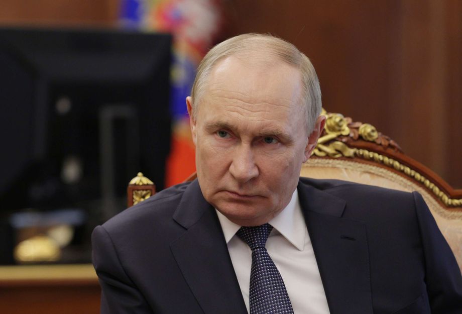Venäjän presidentti Vladimir Putin tavatessaan sodan runteleman Belgorodin alueen kuvernöörin Vjatšeslav Gladkovin heinäkuussa. EPA / AOP