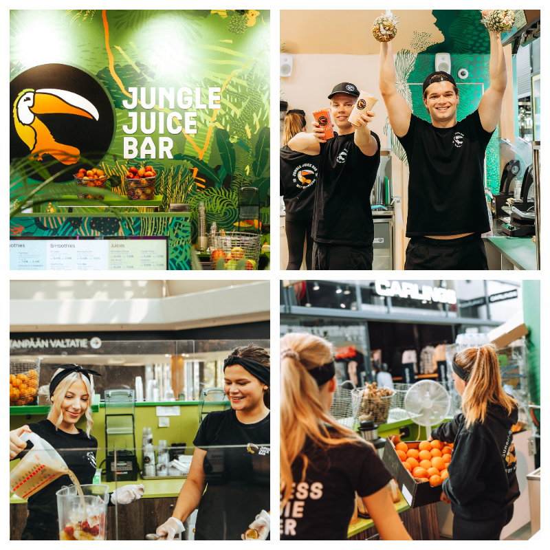 Jungle Juice Bar tuo väriä ja terveellisyyttä NoHon portfolioonJungle Juice Bar toimii Suomen isoissa ja keskisuurissa kaupungeissa, kuten Espoossa, Tampereella ja Rovaniemellä. Kuvat: NoHo Partners, Jungle Juice Bar