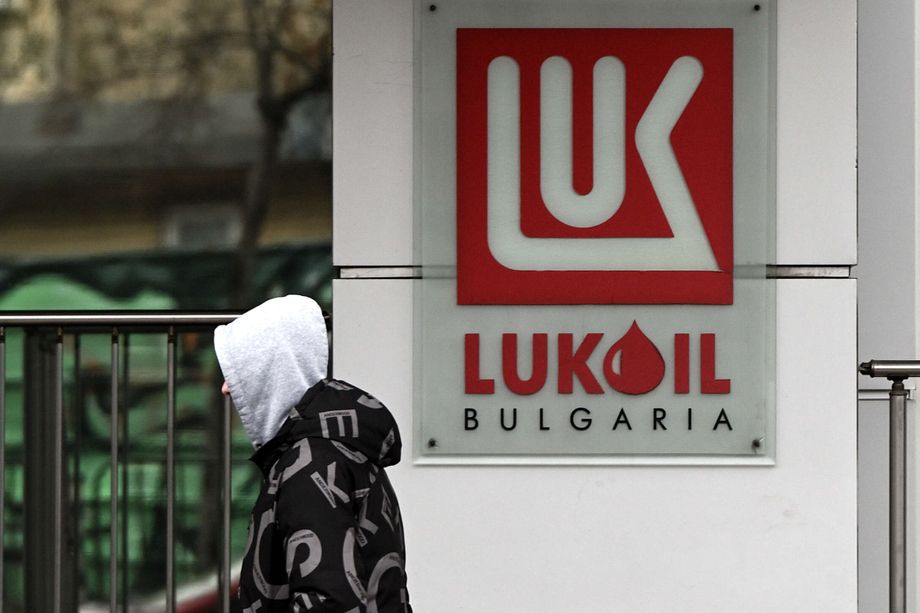 Kuvituskuva. Mies kävelee Lukoilin logon ohi Sofiassa Bulgariassa joulukuussa 2023. EPA / AOP