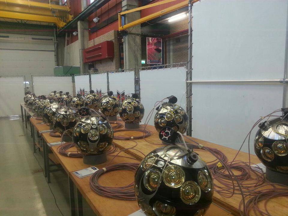 Anturit on kiinnitetty koripallon kokoisiin lasipalloihin. KM3NeT
