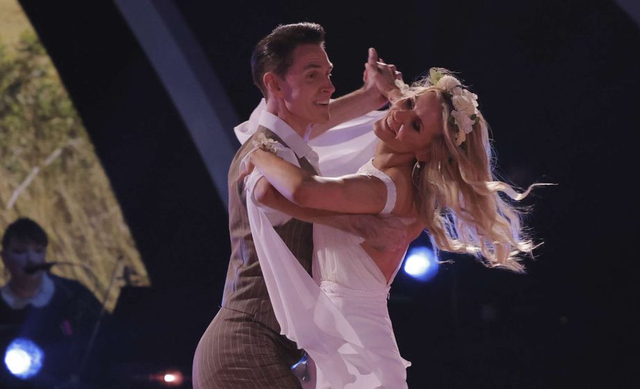 Kolmiloikkaaja Kristiina Mäkelä ja tanssiopettaja Sami Helenius avasivat illan Tanssii tähtien kanssa -lähetyksen kauniilla wieninvalssilla.