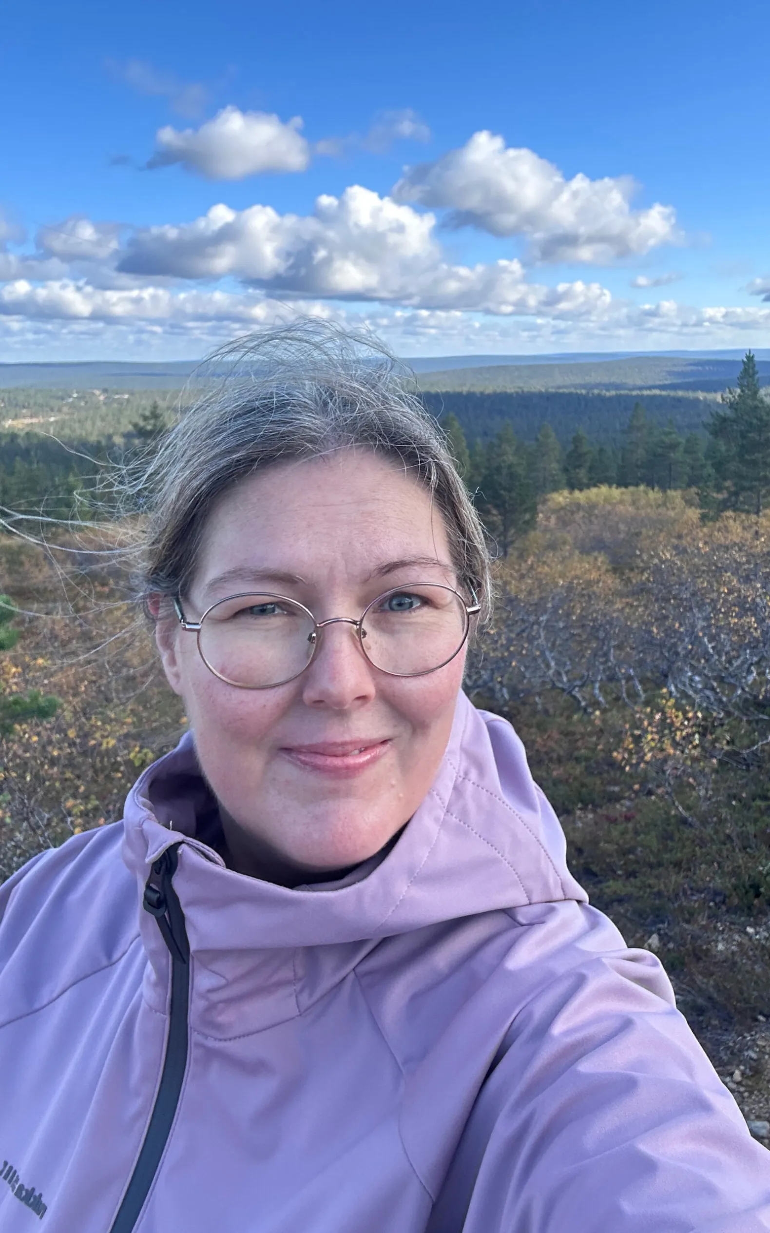 Tanja nauttii matkustelusta ja haluaa siihen panostaa rahallisesti. Tässä hän on patikointireissulla Saariselällä.