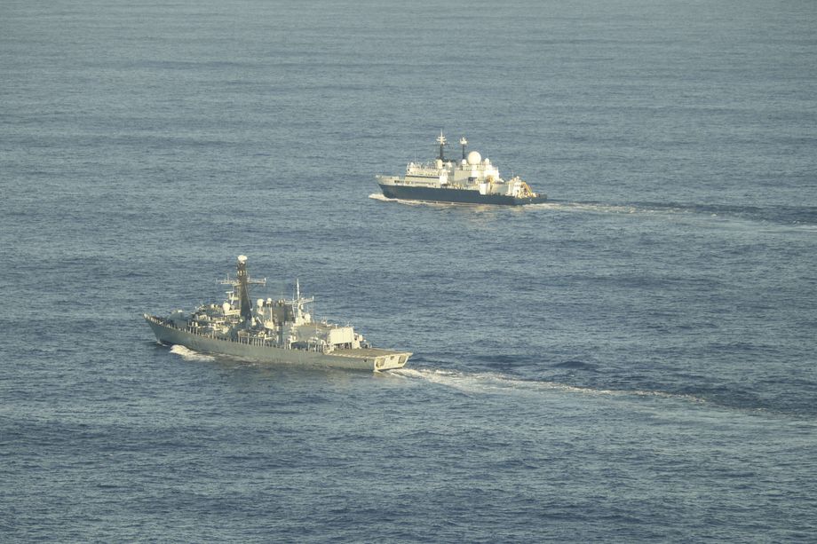 Vakoilulaivaa seuraa parhaillaan Britannian laivaston fregatti Skotlannin rannikolla.