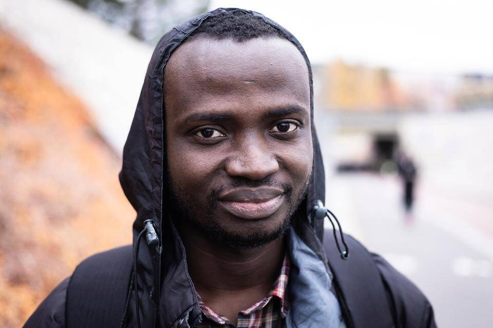 Ebenezer Essiah, 30, Neulamäki: ”Ihmiset ovat ystävällisiä ja suurin osa ihmisistä osaa puhua englantia. Vaikka opiskelen suomea, puhun ihmisille yleensä englantia, ja on hyvä, että he ymmärtävät kieltä.”